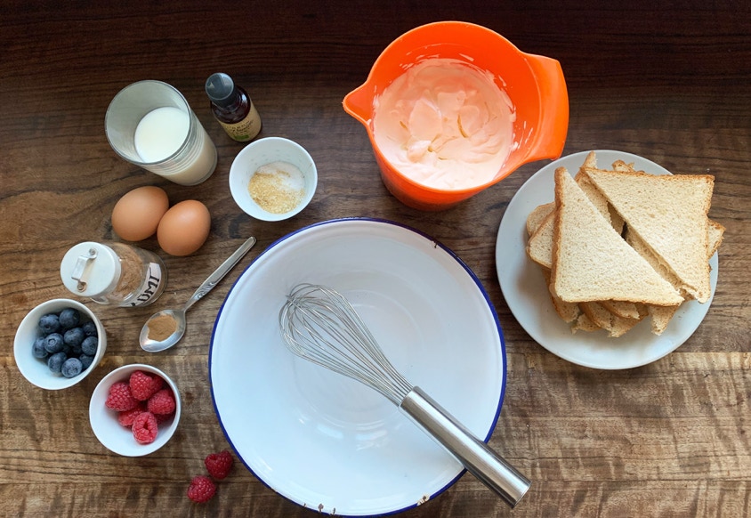 Pain Perdu mit frische Beeren und Ahornsirup servieren –